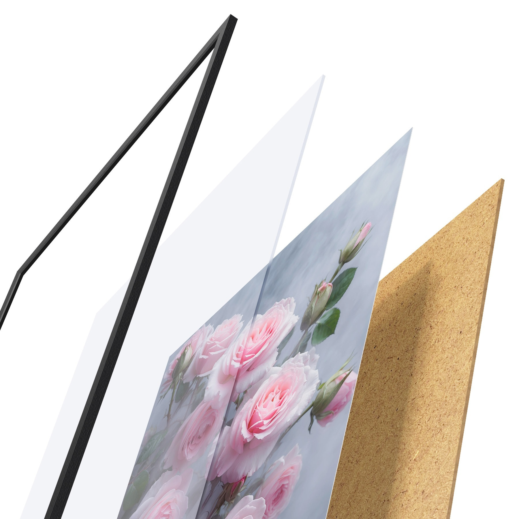 Plakatą sudaro rėmas, pleksiklas, atspausdintas vaizdas ir medžio drožlių plokštės pagrindas. Plakatą galima iš karto pakabinti ant sienos dėl kitoje pusėje esančių laikiklių.