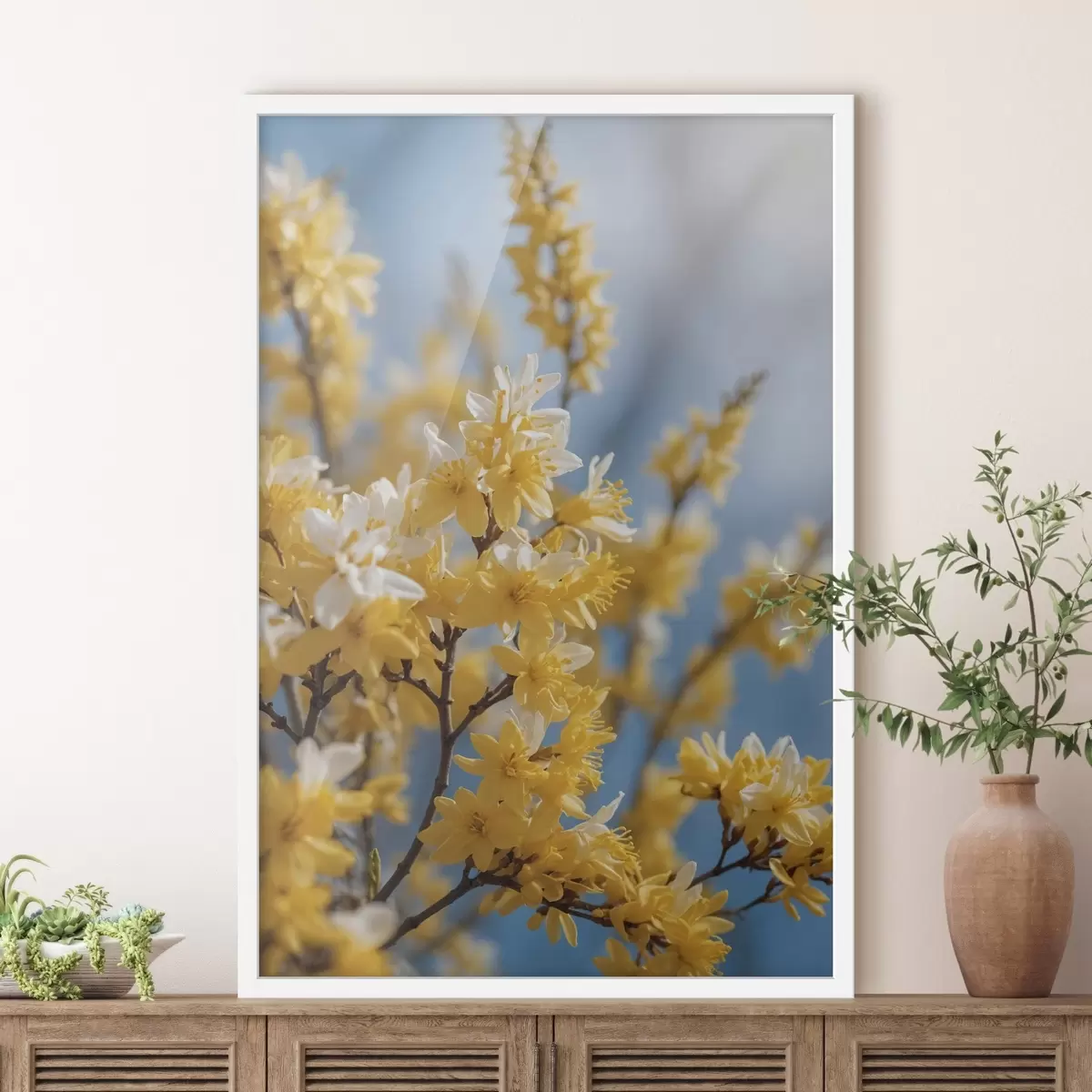 Plakatas Geltonos gėlės mėlyname fone su švelniu fokusavimu Ne f44894