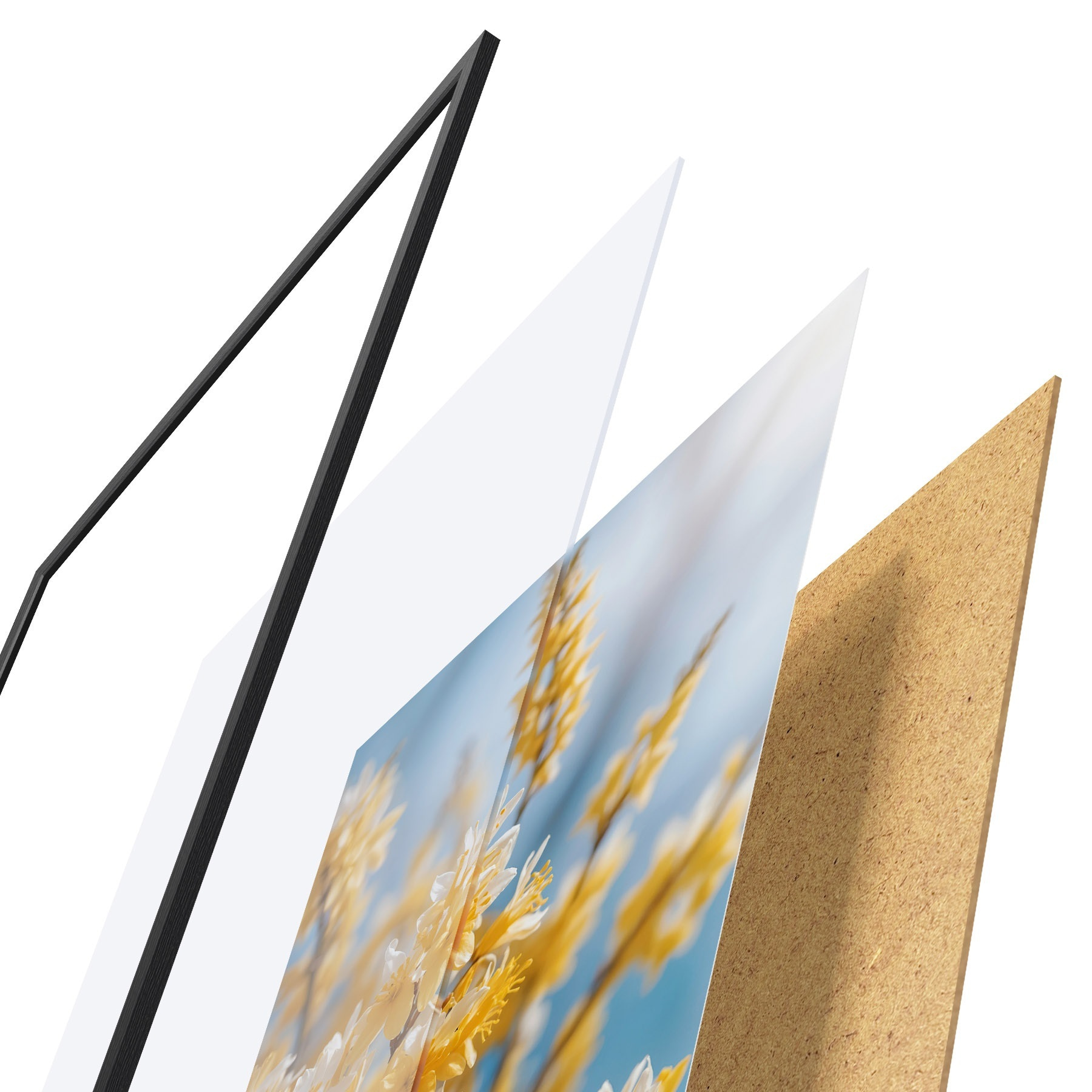 Plakatą sudaro rėmas, pleksiklas, atspausdintas vaizdas ir medžio drožlių plokštės pagrindas. Plakatą galima iš karto pakabinti ant sienos dėl kitoje pusėje esančių laikiklių.