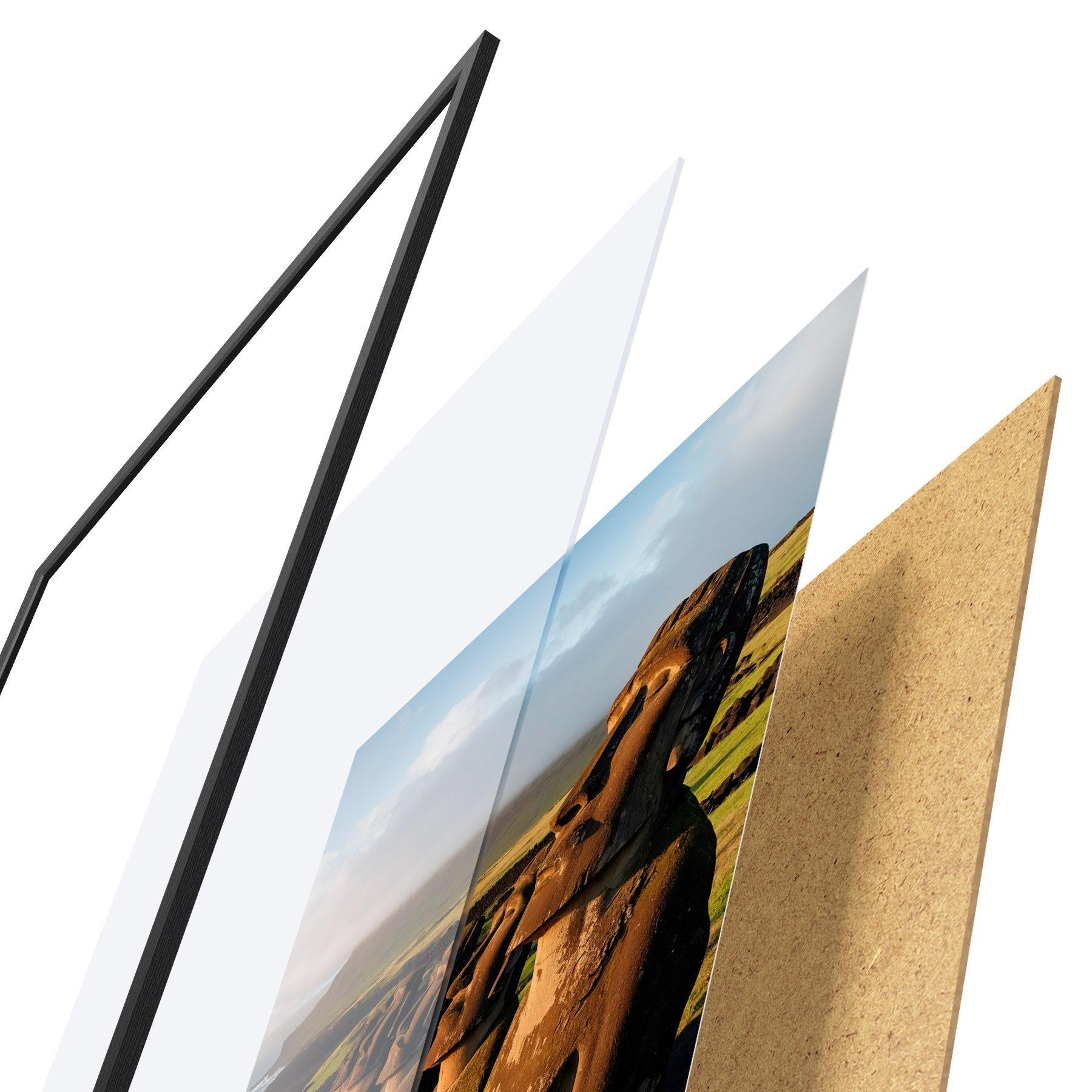 Plakatą sudaro rėmas, pleksiklas, atspausdintas vaizdas ir medžio drožlių plokštės pagrindas. Plakatą galima iš karto pakabinti ant sienos dėl kitoje pusėje esančių laikiklių.