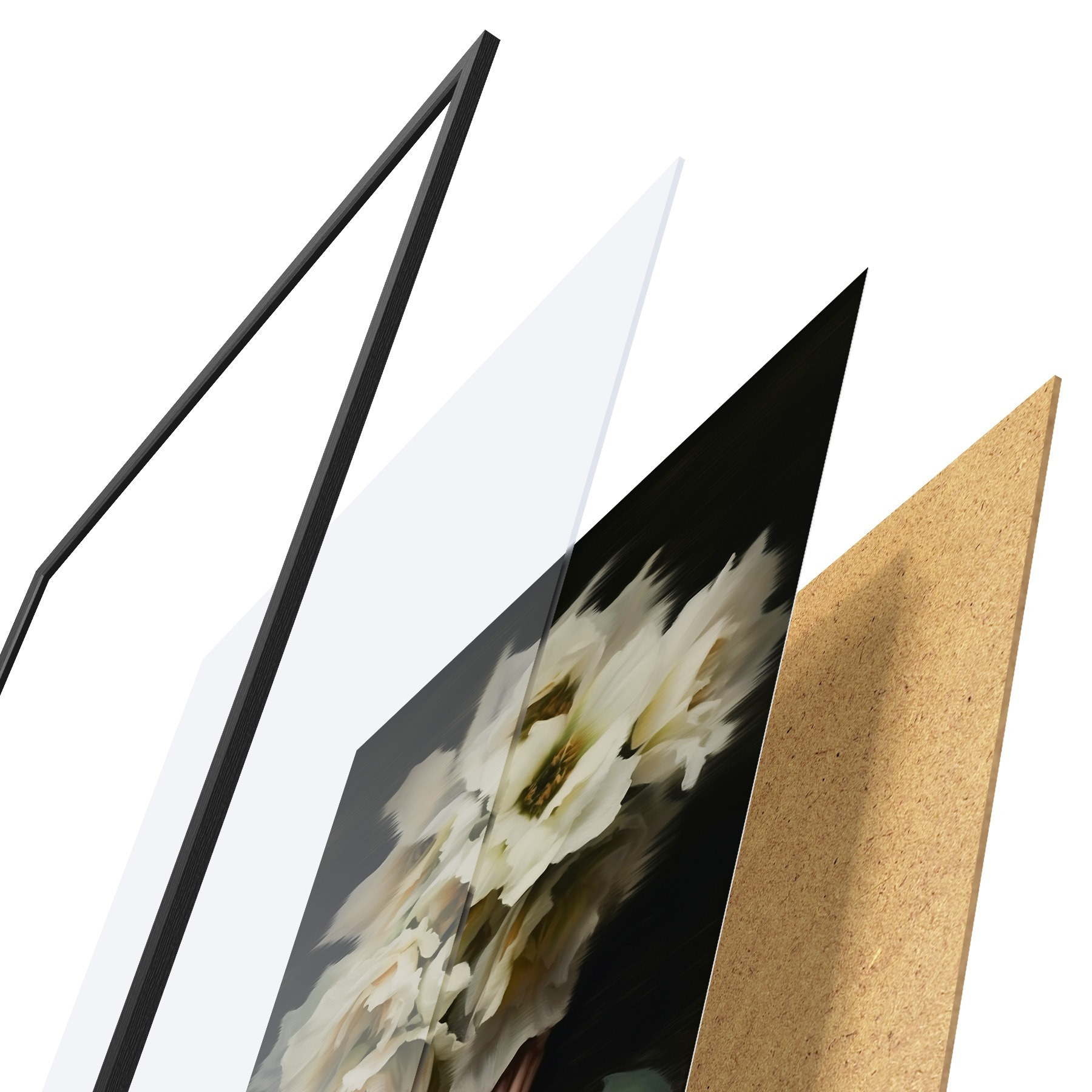 Plakatą sudaro rėmas, pleksiklas, atspausdintas vaizdas ir medžio drožlių plokštės pagrindas. Plakatą galima iš karto pakabinti ant sienos dėl kitoje pusėje esančių laikiklių.