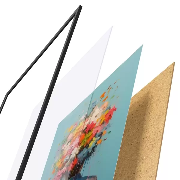Plakatą sudaro rėmas, pleksiklas, atspausdintas vaizdas ir medžio drožlių plokštės pagrindas. Plakatą galima iš karto pakabinti ant sienos dėl kitoje pusėje esančių laikiklių.