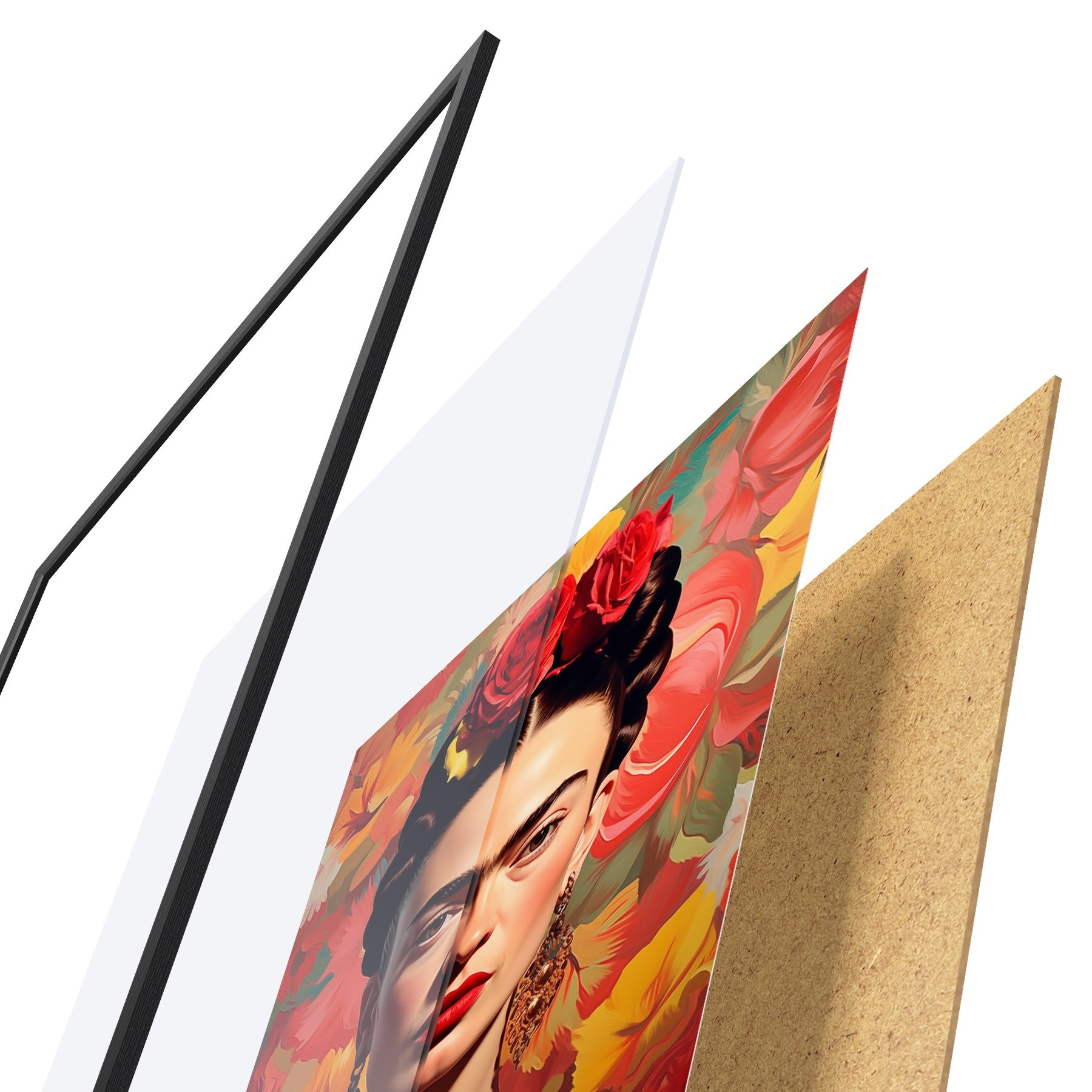 Plakatą sudaro rėmas, pleksiklas, atspausdintas vaizdas ir medžio drožlių plokštės pagrindas. Plakatą galima iš karto pakabinti ant sienos dėl kitoje pusėje esančių laikiklių.