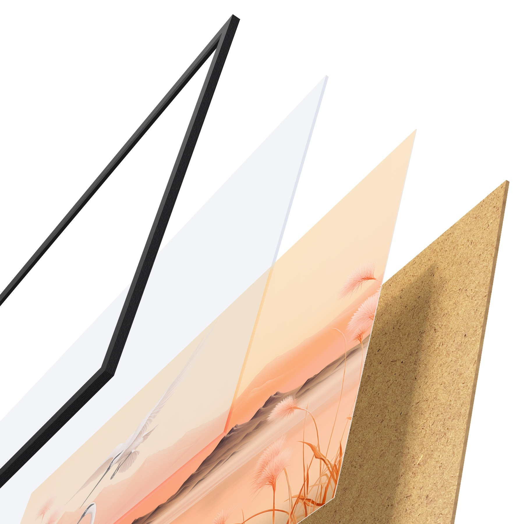 Plakatą sudaro rėmas, pleksiklas, atspausdintas vaizdas ir medžio drožlių plokštės pagrindas. Plakatą galima iš karto pakabinti ant sienos dėl kitoje pusėje esančių laikiklių.