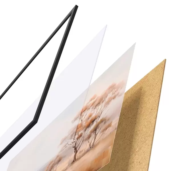 Plakatą sudaro rėmas, pleksiklas, atspausdintas vaizdas ir medžio drožlių plokštės pagrindas. Plakatą galima iš karto pakabinti ant sienos dėl kitoje pusėje esančių laikiklių.