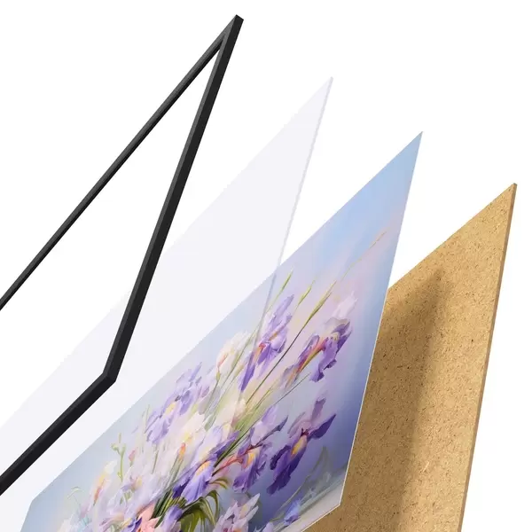 Plakatą sudaro rėmas, pleksiklas, atspausdintas vaizdas ir medžio drožlių plokštės pagrindas. Plakatą galima iš karto pakabinti ant sienos dėl kitoje pusėje esančių laikiklių.