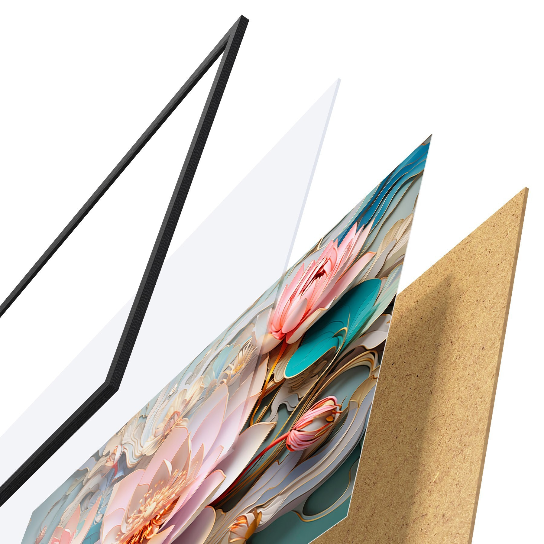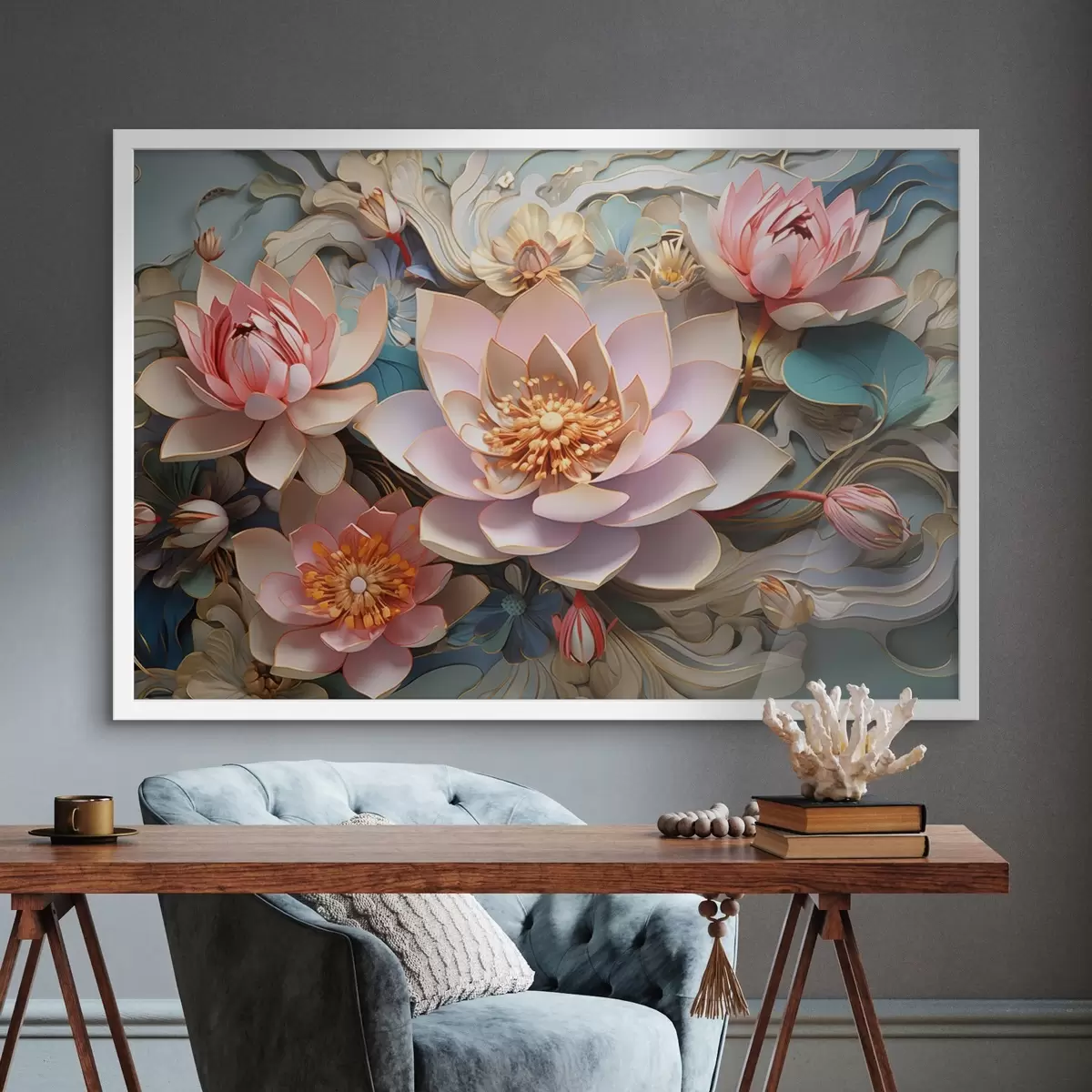Plakatas Rožiniai-oranžiniai lotosai 3D piešimo stiliumi f44934
