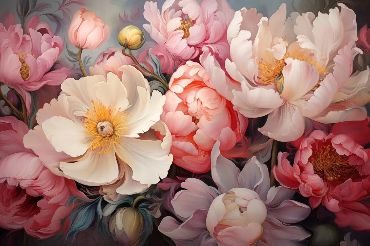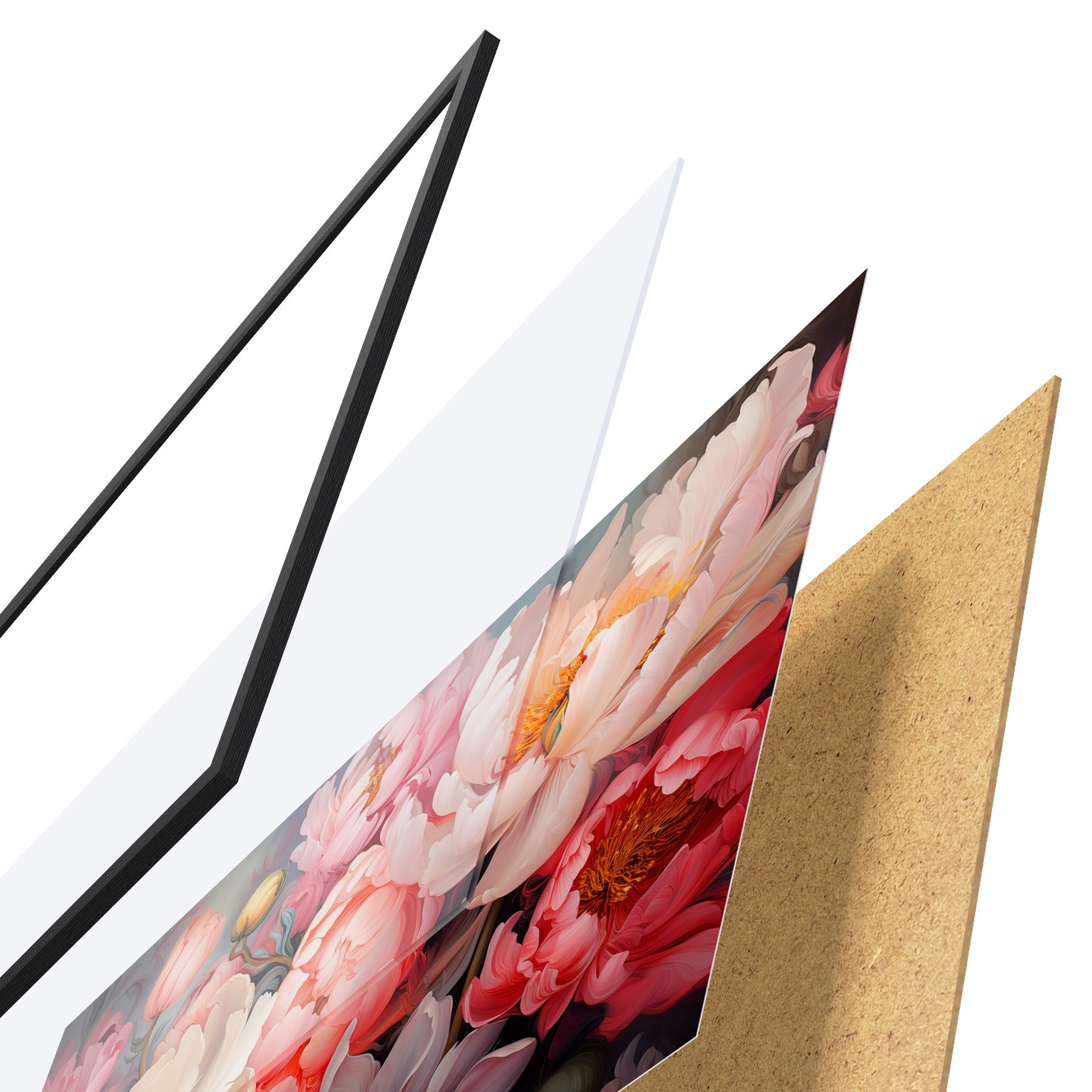Plakatas Sodrūs rožinių atspalvių aliejinės tapybos stiliaus bijūnai Ne f44936