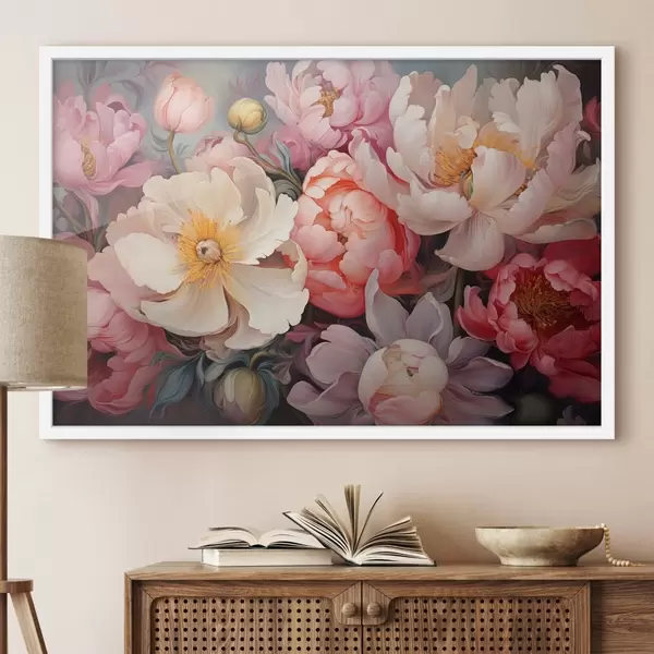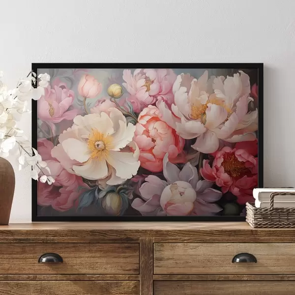 Plakatas Sodrūs rožinių atspalvių aliejinės tapybos stiliaus bijūnai f44936