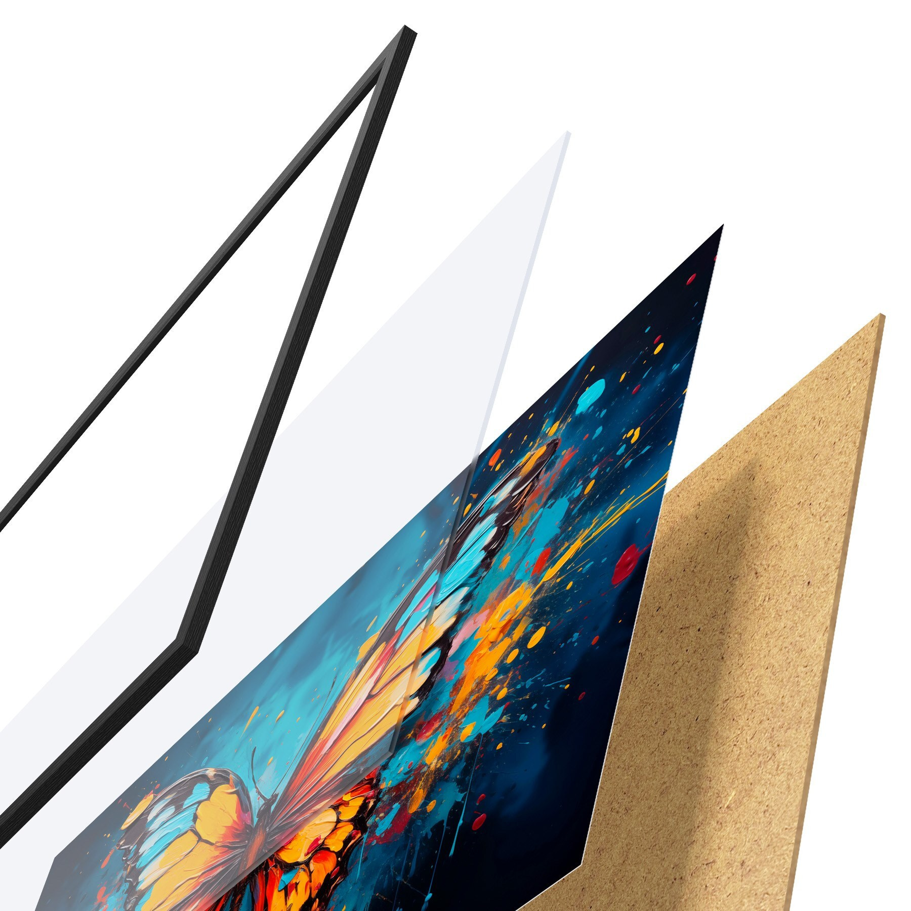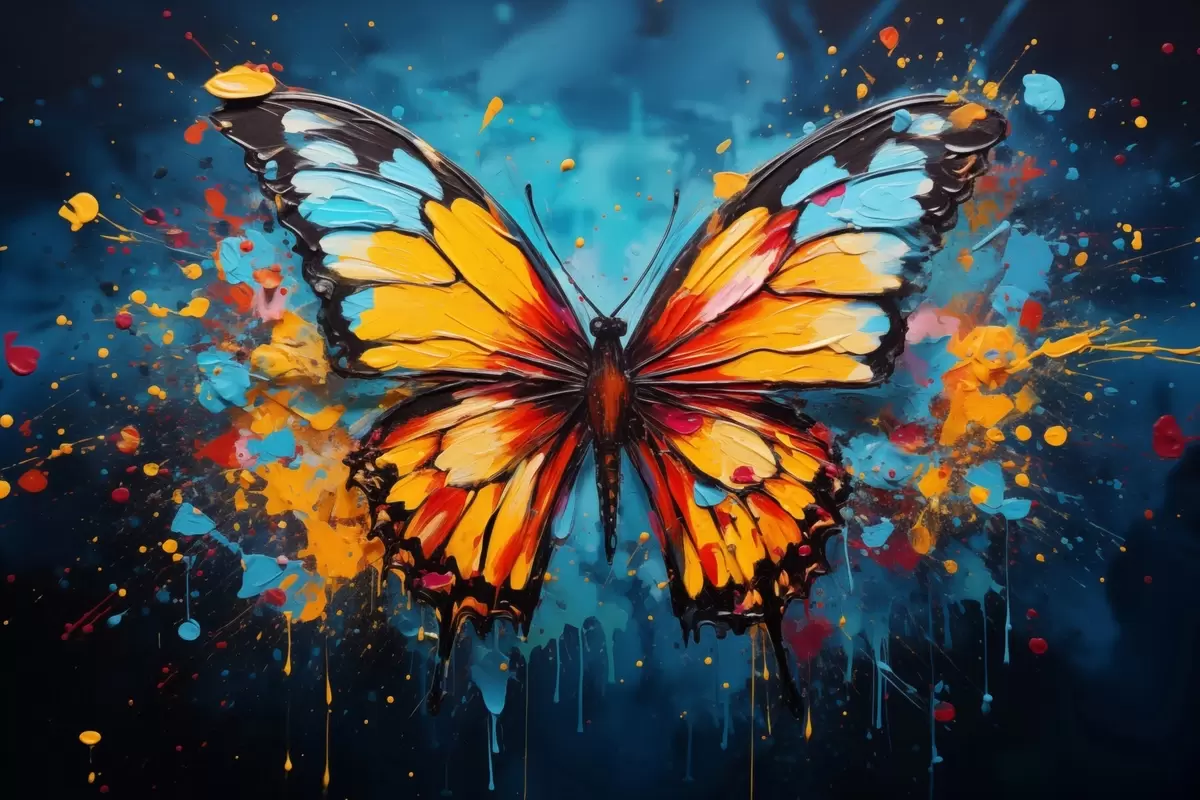 Plakatas Spalvingas drugelis dažų purslų stiliumi f44938