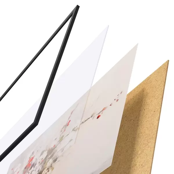 Plakatą sudaro rėmas, pleksiklas, atspausdintas vaizdas ir medžio drožlių plokštės pagrindas. Plakatą galima iš karto pakabinti ant sienos dėl kitoje pusėje esančių laikiklių.