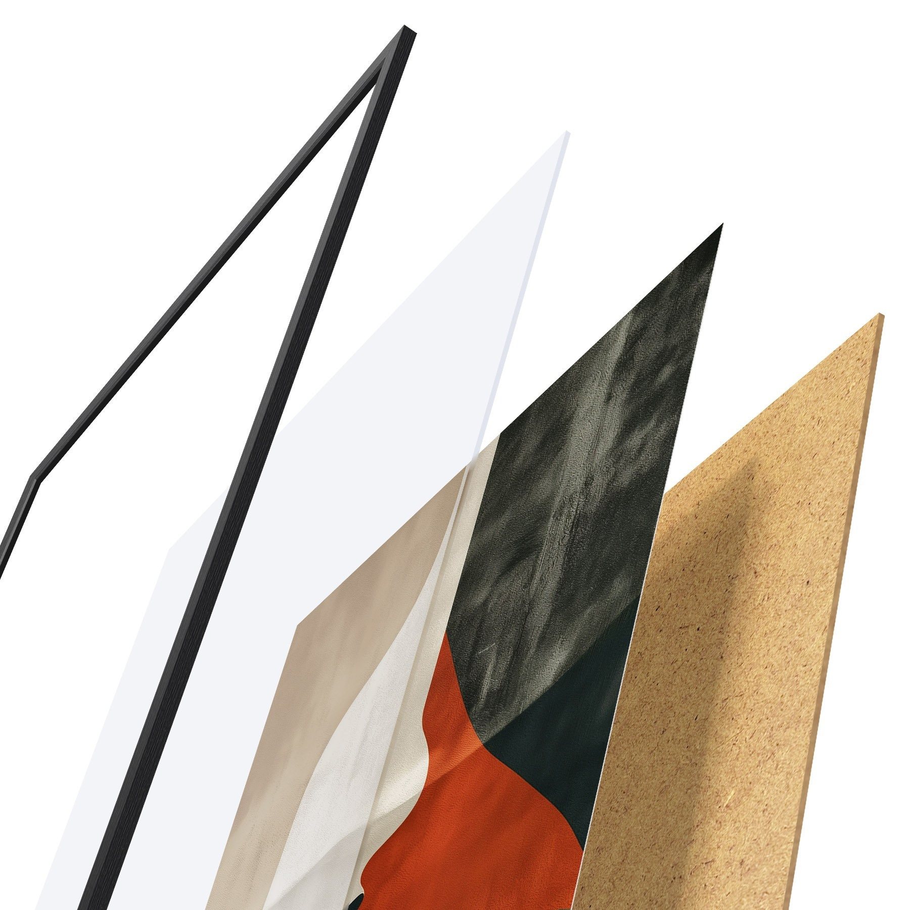 Plakatą sudaro rėmas, pleksiklas, atspausdintas vaizdas ir medžio drožlių plokštės pagrindas. Plakatą galima iš karto pakabinti ant sienos dėl kitoje pusėje esančių laikiklių.