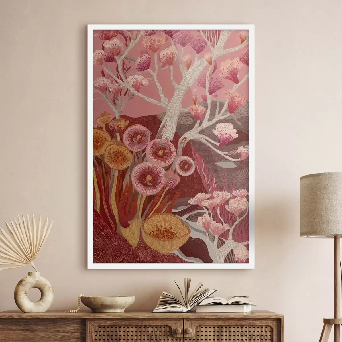 Plakatas Vintažinės gėlės, geometrinis menas, akrilo stiliaus piešinys f44976