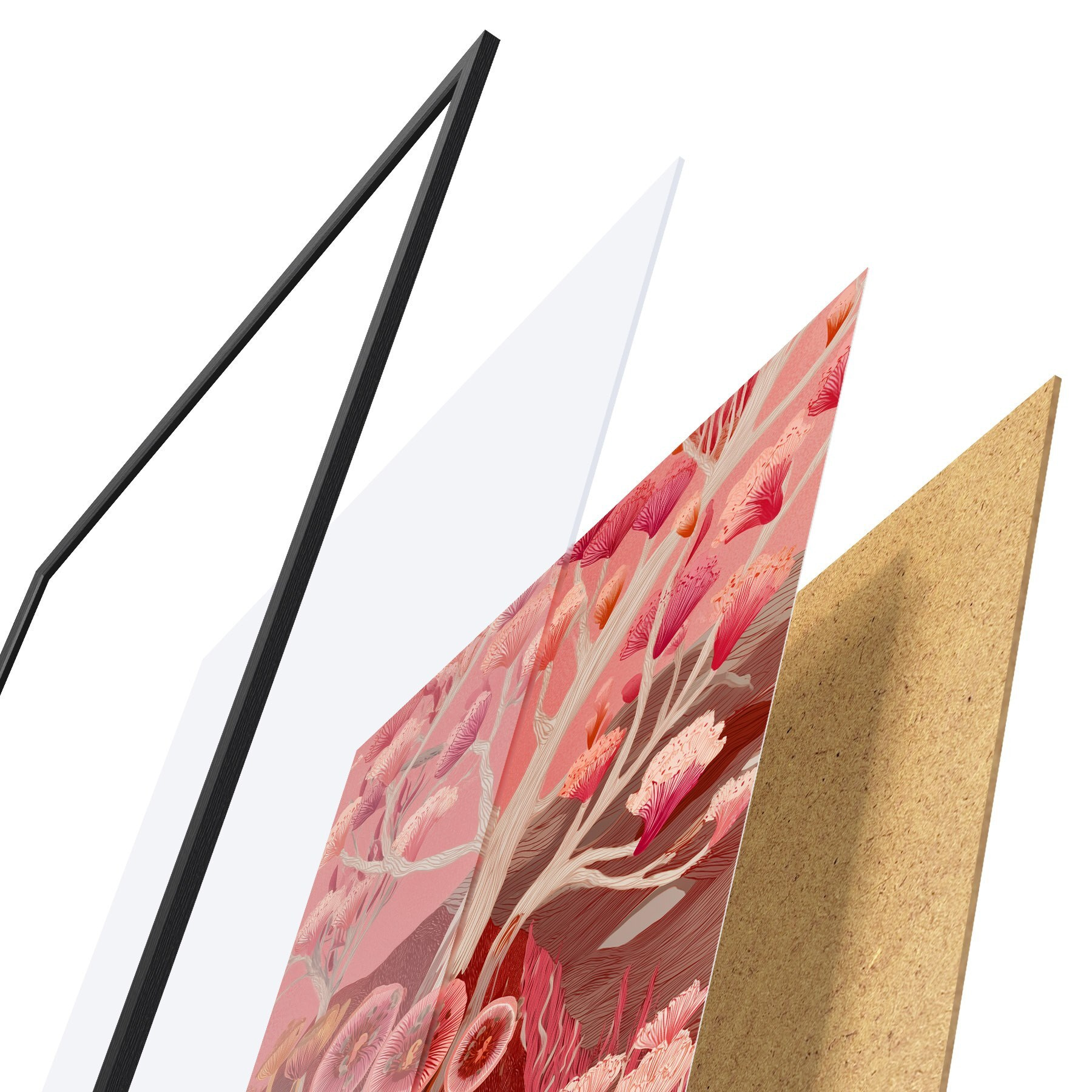 Plakatą sudaro rėmas, pleksiklas, atspausdintas vaizdas ir medžio drožlių plokštės pagrindas. Plakatą galima iš karto pakabinti ant sienos dėl kitoje pusėje esančių laikiklių.