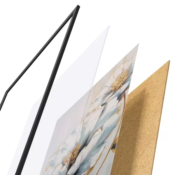 Plakatą sudaro rėmas, pleksiklas, atspausdintas vaizdas ir medžio drožlių plokštės pagrindas. Plakatą galima iš karto pakabinti ant sienos dėl kitoje pusėje esančių laikiklių.