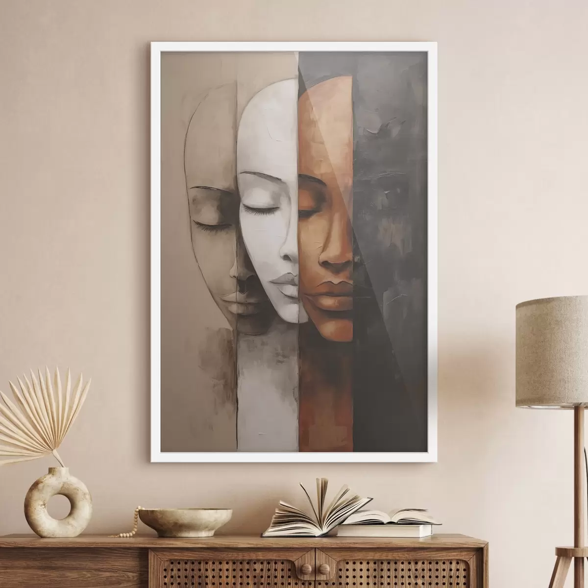 Plakatas Abstraktaus stiliaus portretas su veidais f45003