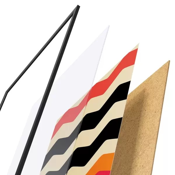 Plakatą sudaro rėmas, pleksiklas, atspausdintas vaizdas ir medžio drožlių plokštės pagrindas. Plakatą galima iš karto pakabinti ant sienos dėl kitoje pusėje esančių laikiklių.