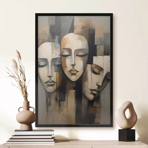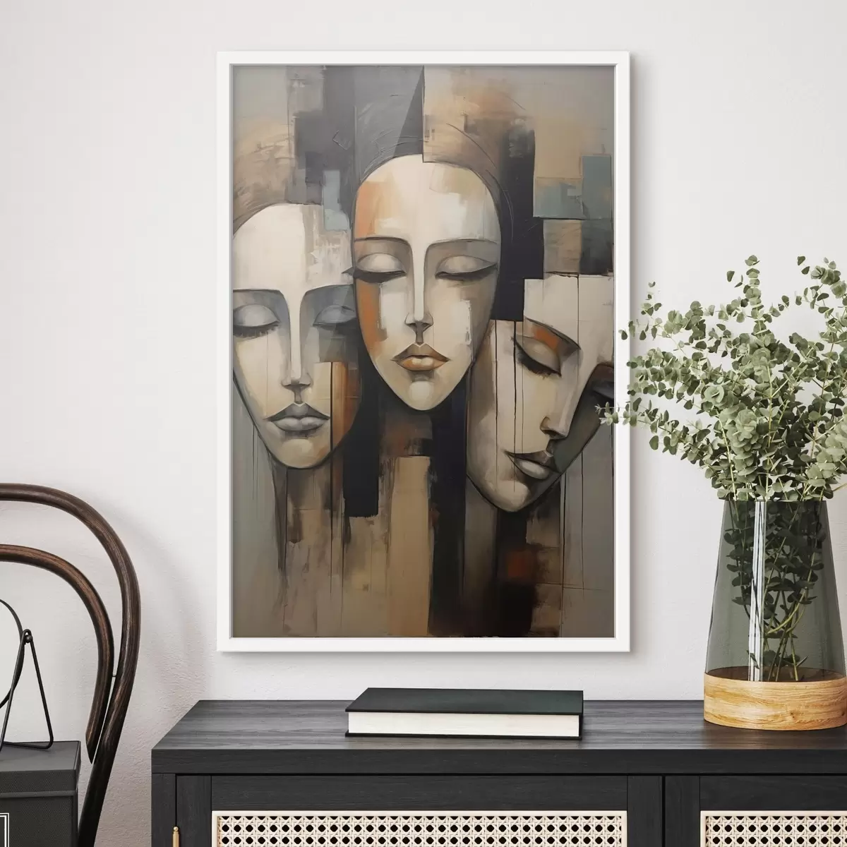Plakatas Trys moterų veidai užmerktomis akimis kubizmo stiliumi f45008