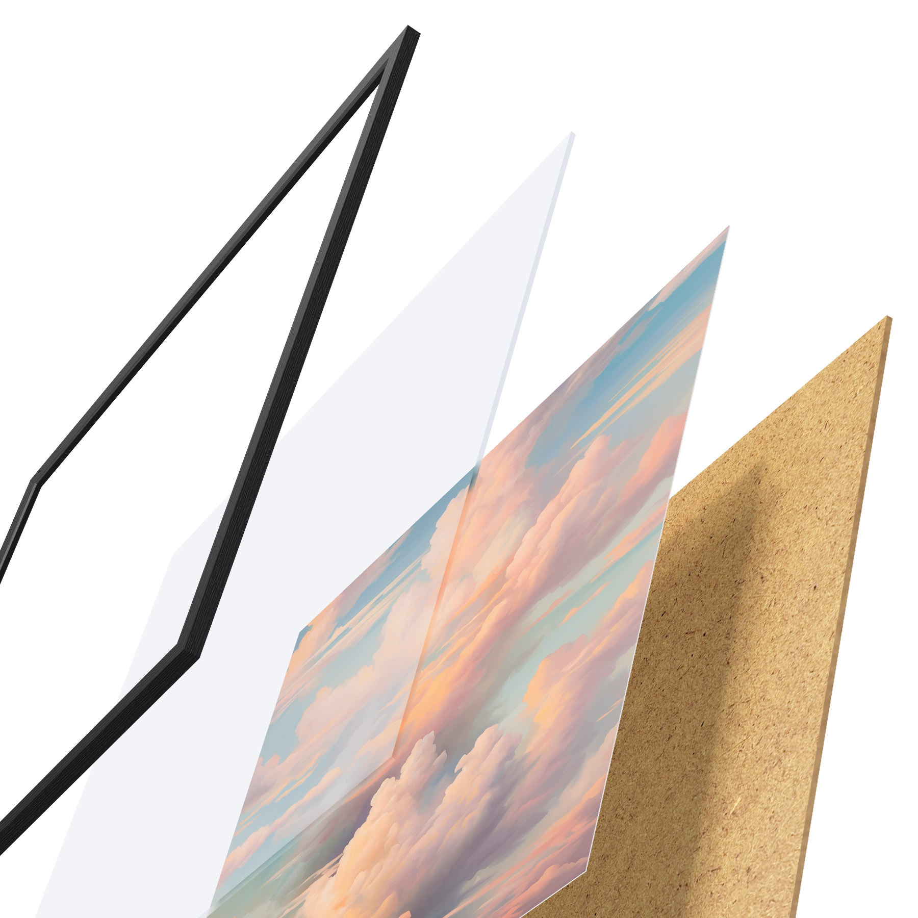 Plakatą sudaro rėmas, pleksiklas, atspausdintas vaizdas ir medžio drožlių plokštės pagrindas. Plakatą galima iš karto pakabinti ant sienos dėl kitoje pusėje esančių laikiklių.