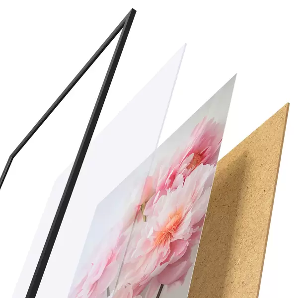 Plakatą sudaro rėmas, pleksiklas, atspausdintas vaizdas ir medžio drožlių plokštės pagrindas. Plakatą galima iš karto pakabinti ant sienos dėl kitoje pusėje esančių laikiklių.