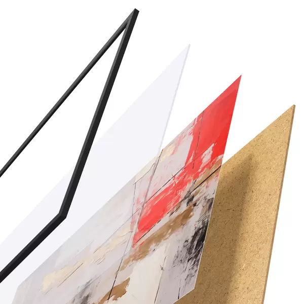 Plakatą sudaro rėmas, pleksiklas, atspausdintas vaizdas ir medžio drožlių plokštės pagrindas. Plakatą galima iš karto pakabinti ant sienos dėl kitoje pusėje esančių laikiklių.