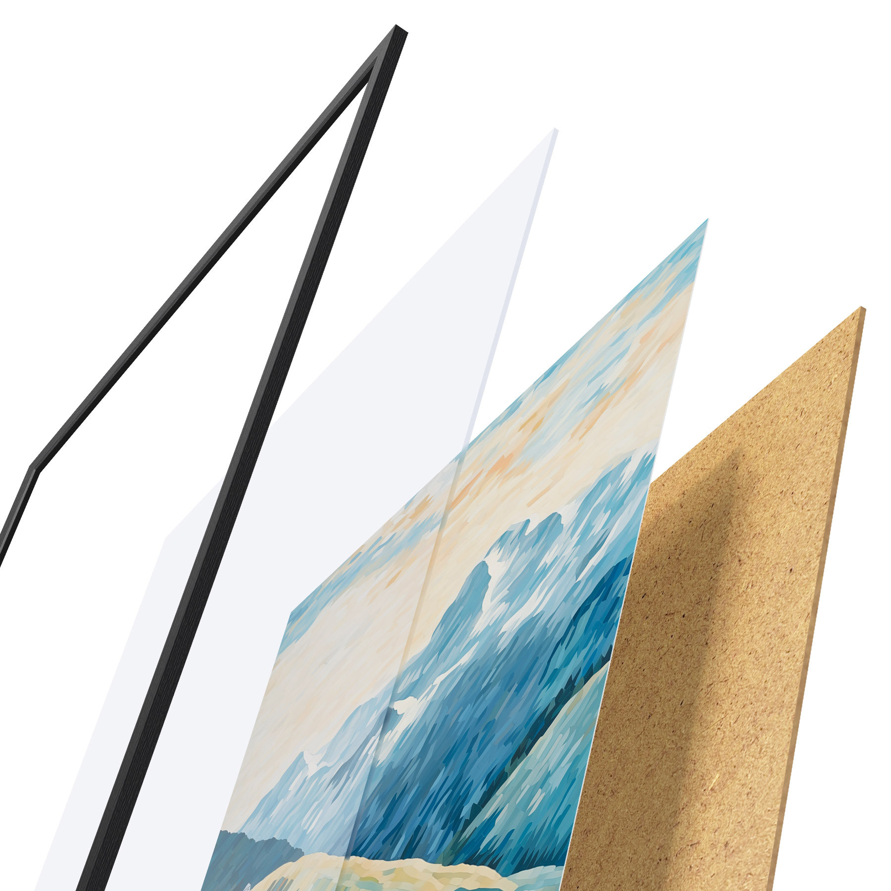 Plakatą sudaro rėmas, pleksiklas, atspausdintas vaizdas ir medžio drožlių plokštės pagrindas. Plakatą galima iš karto pakabinti ant sienos dėl kitoje pusėje esančių laikiklių.