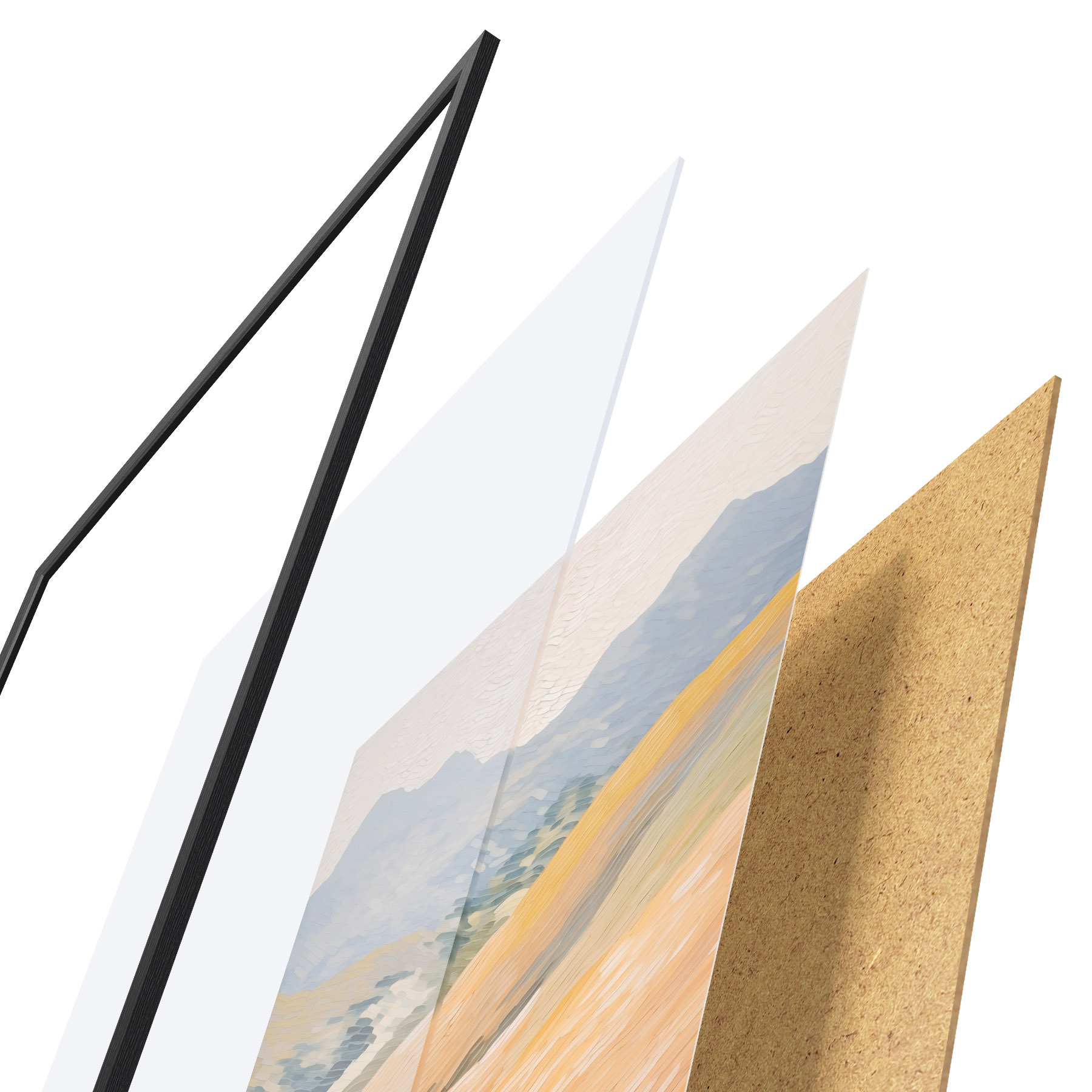 Plakatą sudaro rėmas, pleksiklas, atspausdintas vaizdas ir medžio drožlių plokštės pagrindas. Plakatą galima iš karto pakabinti ant sienos dėl kitoje pusėje esančių laikiklių.
