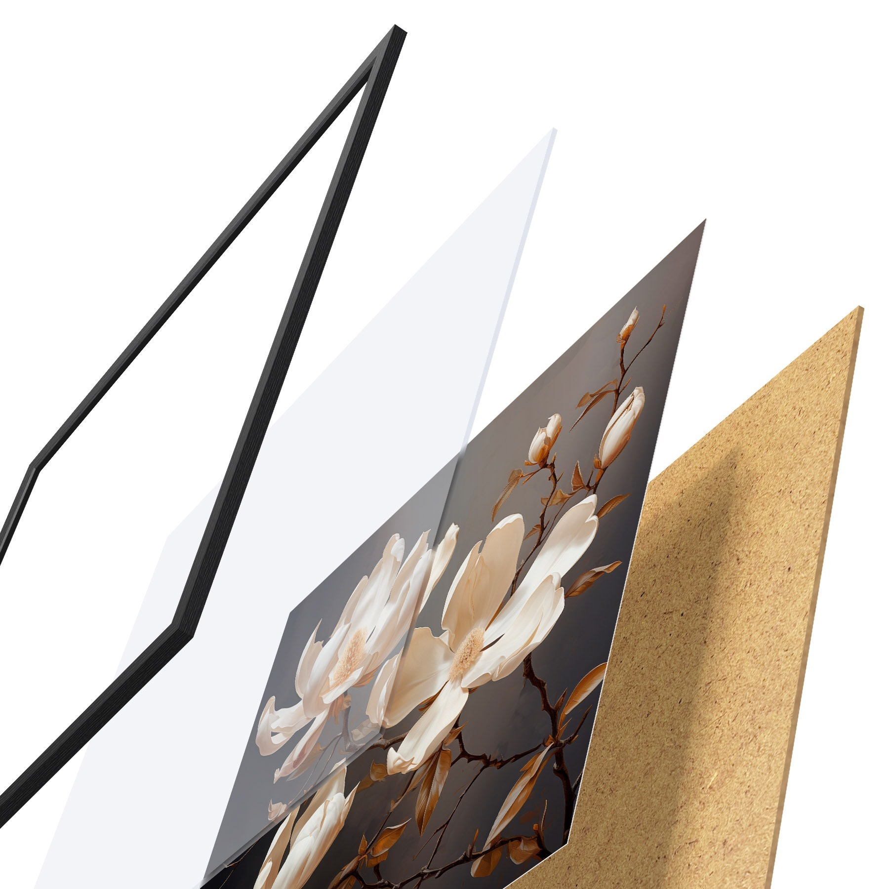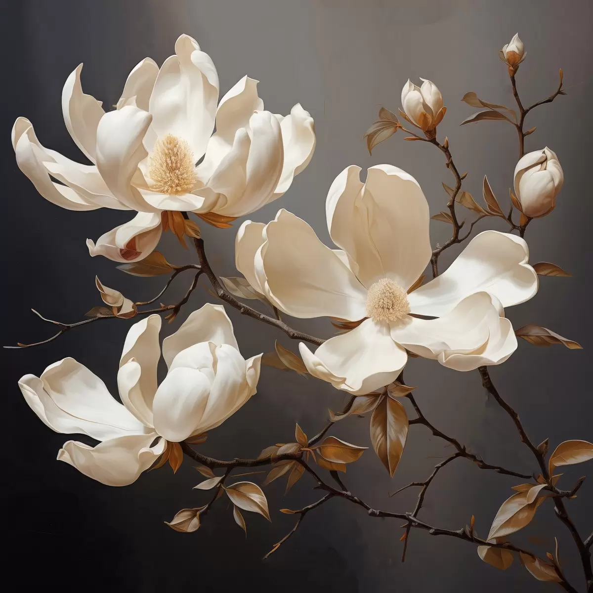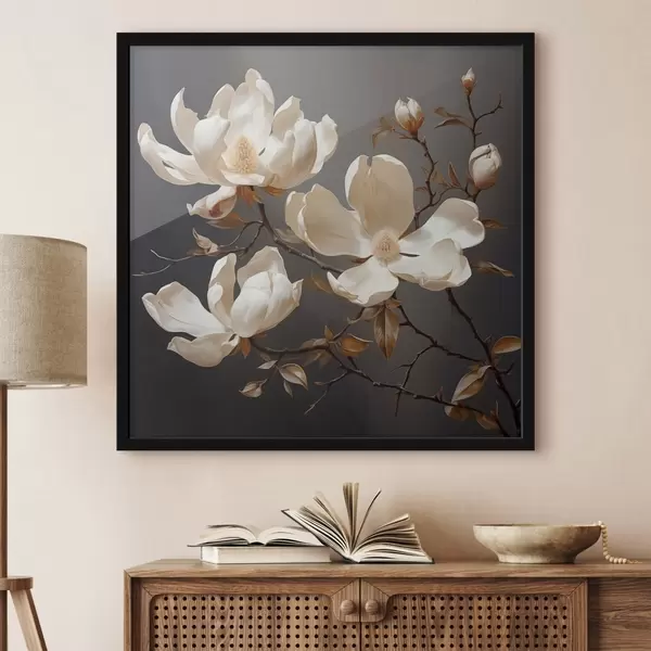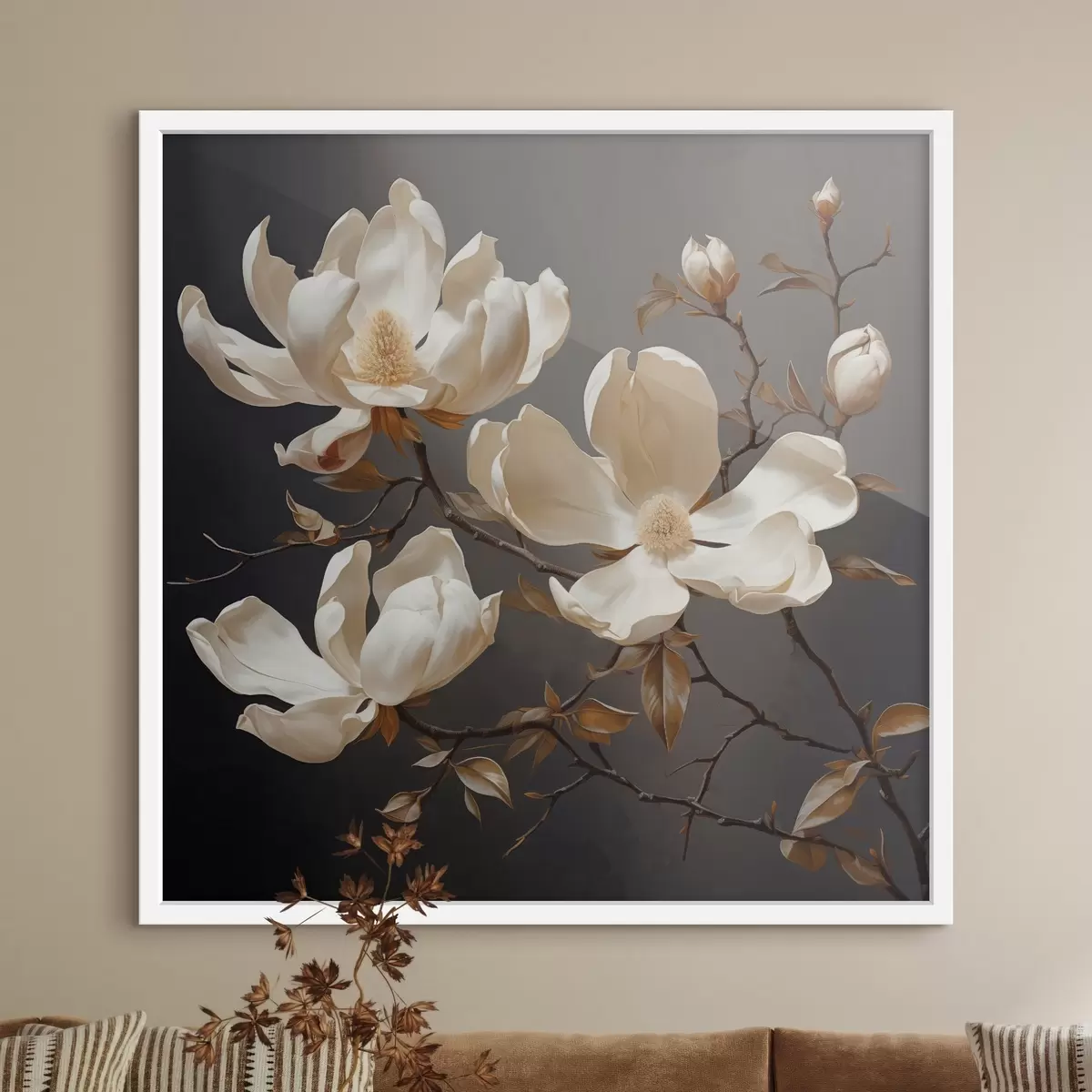Plakatas Baltos magnolijos tamsiame fone tapybiniu stiliumi f45038