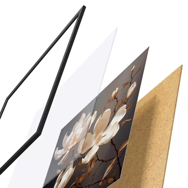 Plakatą sudaro rėmas, pleksiklas, atspausdintas vaizdas ir medžio drožlių plokštės pagrindas. Plakatą galima iš karto pakabinti ant sienos dėl kitoje pusėje esančių laikiklių.