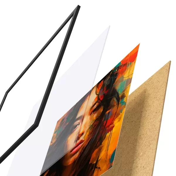 Plakatą sudaro rėmas, pleksiklas, atspausdintas vaizdas ir medžio drožlių plokštės pagrindas. Plakatą galima iš karto pakabinti ant sienos dėl kitoje pusėje esančių laikiklių.