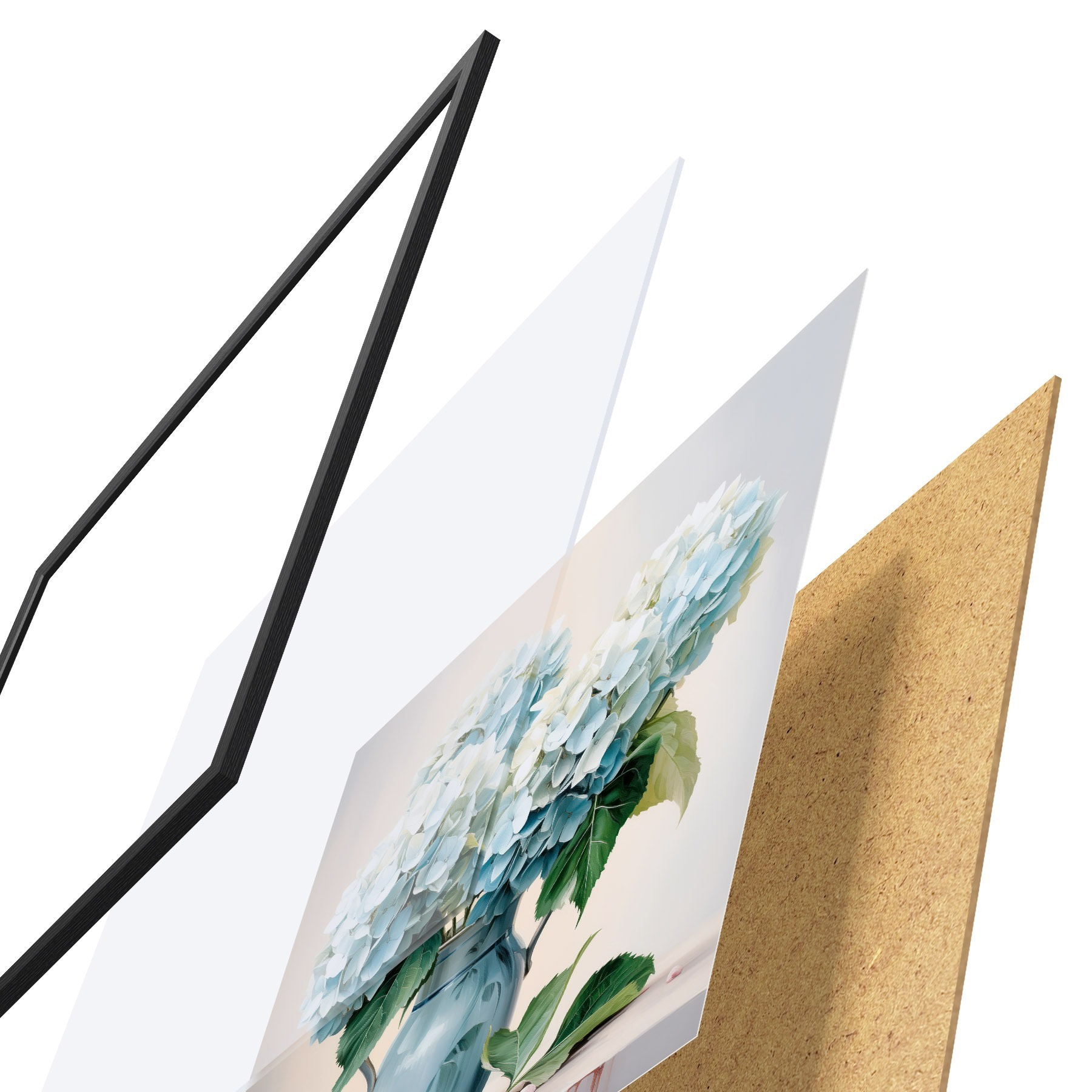 Plakatą sudaro rėmas, pleksiklas, atspausdintas vaizdas ir medžio drožlių plokštės pagrindas. Plakatą galima iš karto pakabinti ant sienos dėl kitoje pusėje esančių laikiklių.