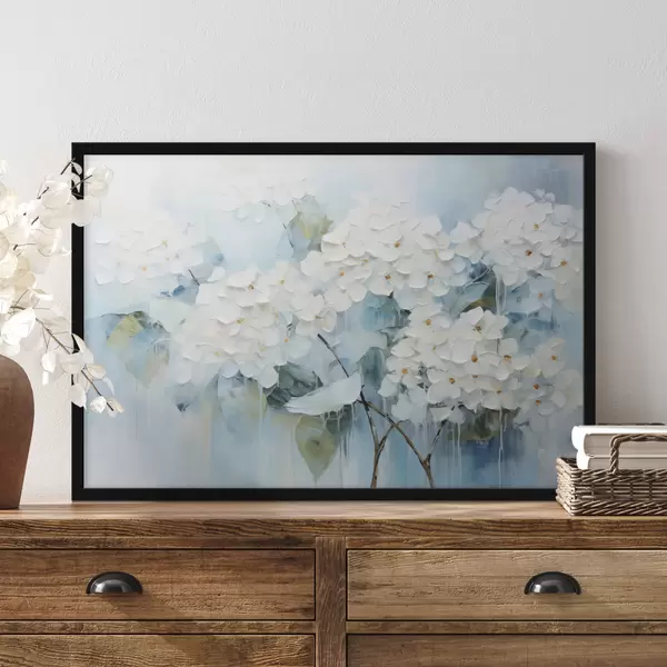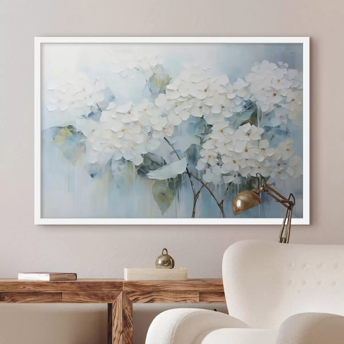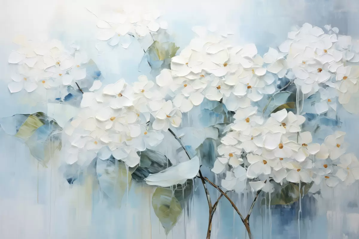 Plakatas Žydinčios baltosios hortenzijos aliejinės tapybos stiliumi f45051