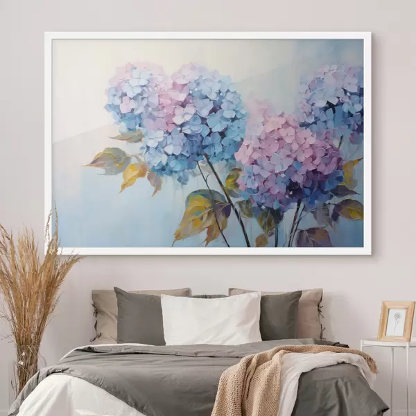 Plakatas Švelnių atspalvių abstraktūs hortenzijos žiedai f45056