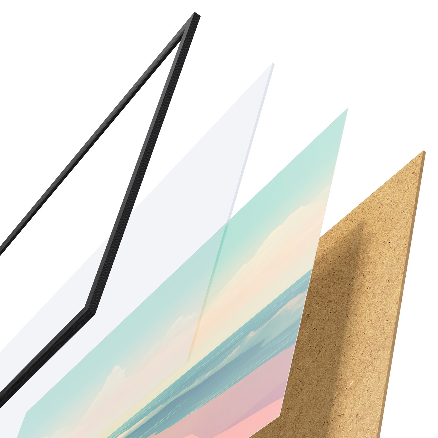 Plakatą sudaro rėmas, pleksiklas, atspausdintas vaizdas ir medžio drožlių plokštės pagrindas. Plakatą galima iš karto pakabinti ant sienos dėl kitoje pusėje esančių laikiklių.
