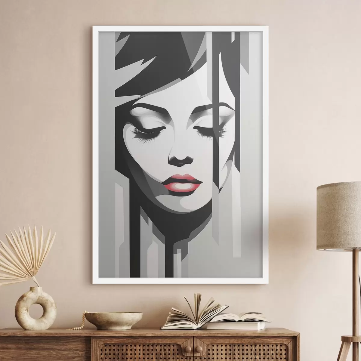 Plakatas Juodai baltas veidas užmerktomis akimis f45076