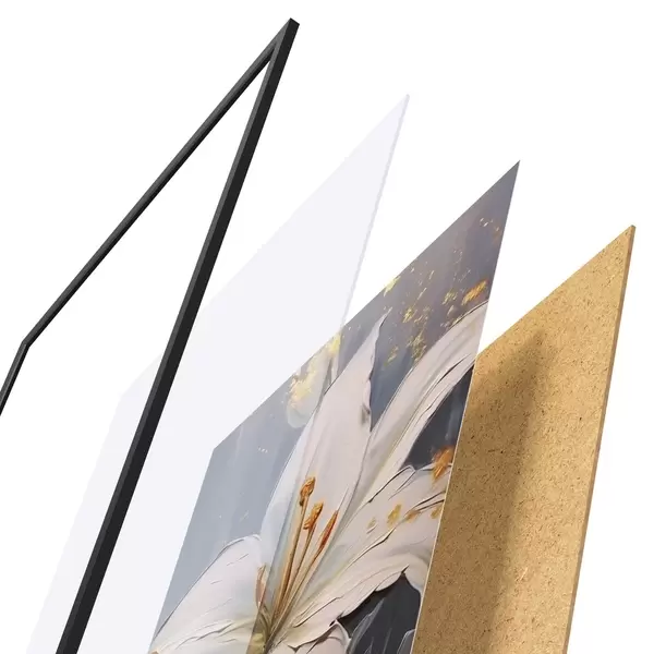 Plakatą sudaro rėmas, pleksiklas, atspausdintas vaizdas ir medžio drožlių plokštės pagrindas. Plakatą galima iš karto pakabinti ant sienos dėl kitoje pusėje esančių laikiklių.