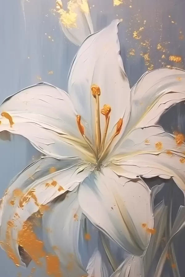 Plakatas Balta lelija su geltonais akcentais mėlyname fone f45078