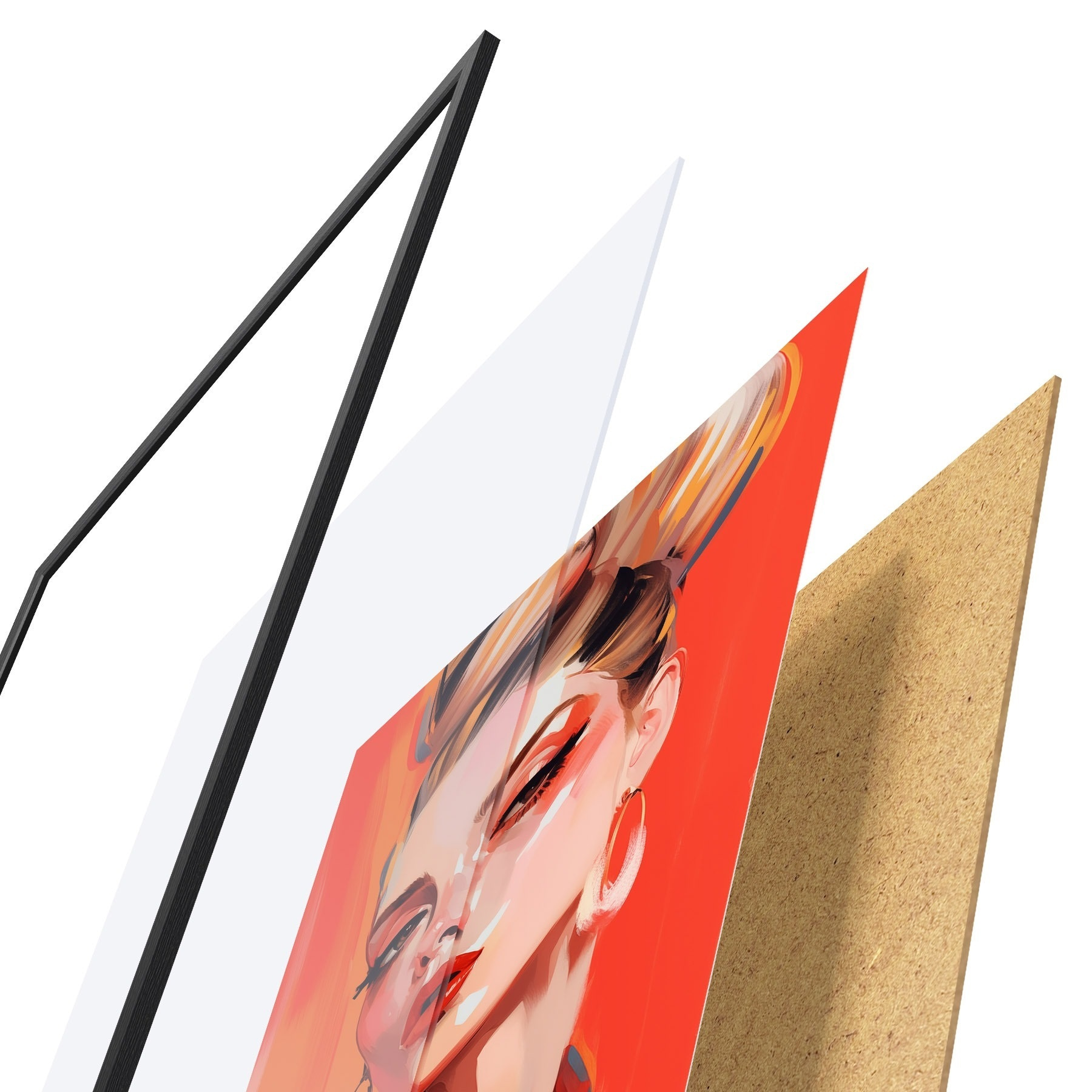 Plakatą sudaro rėmas, pleksiklas, atspausdintas vaizdas ir medžio drožlių plokštės pagrindas. Plakatą galima iš karto pakabinti ant sienos dėl kitoje pusėje esančių laikiklių.