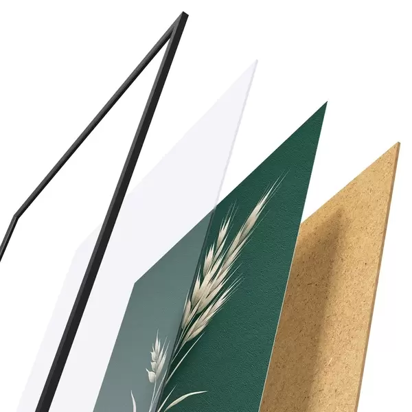 Plakatą sudaro rėmas, pleksiklas, atspausdintas vaizdas ir medžio drožlių plokštės pagrindas. Plakatą galima iš karto pakabinti ant sienos dėl kitoje pusėje esančių laikiklių.