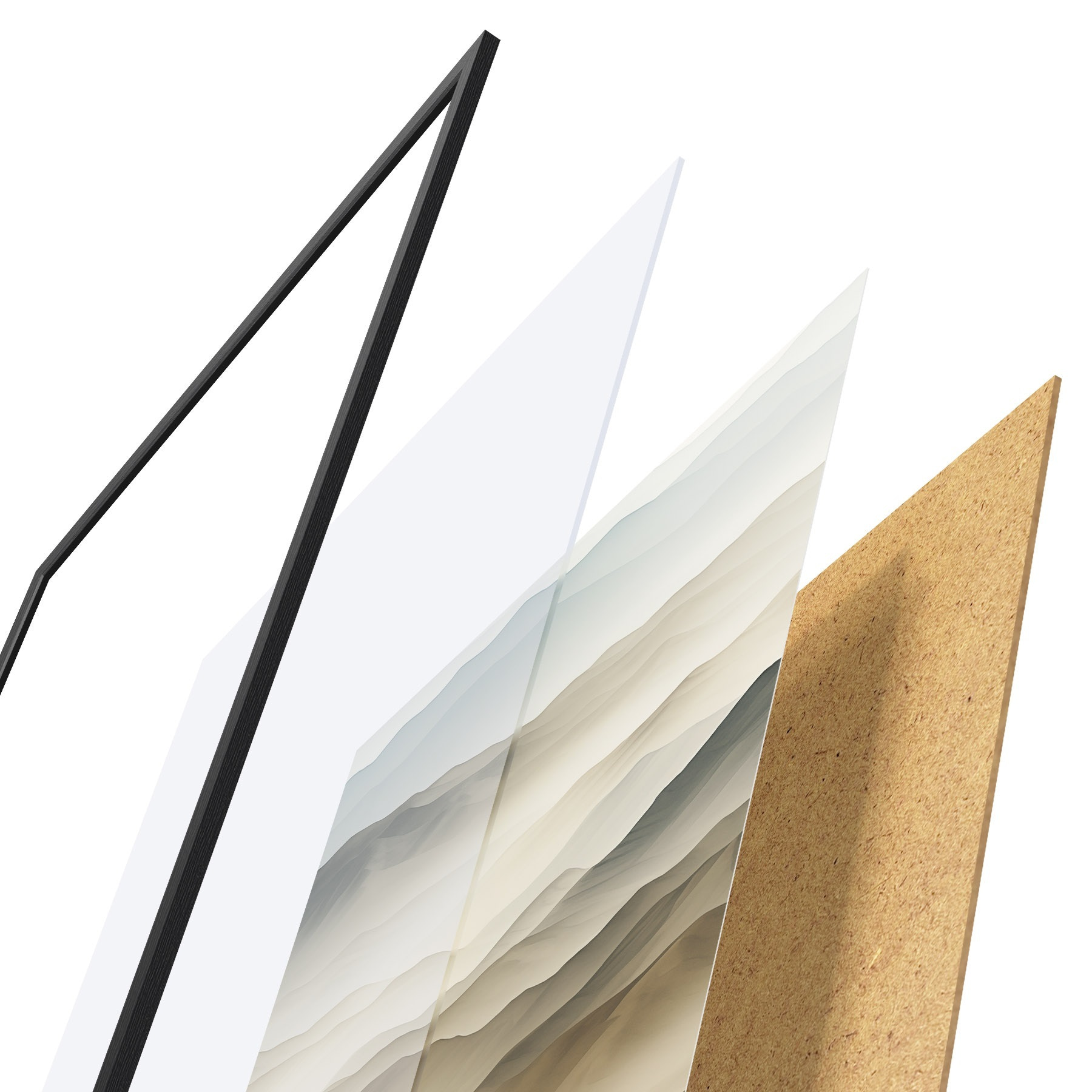 Plakatą sudaro rėmas, pleksiklas, atspausdintas vaizdas ir medžio drožlių plokštės pagrindas. Plakatą galima iš karto pakabinti ant sienos dėl kitoje pusėje esančių laikiklių.