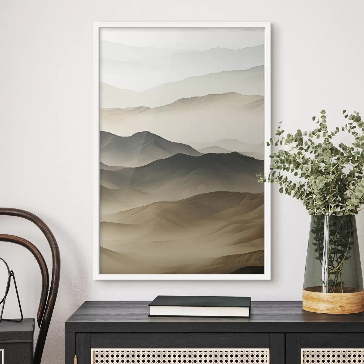 Plakatas dykumos kalvos, lygios formos, išblukusios, organinė tekstūra, ramus, minimalus, reljefas f45097