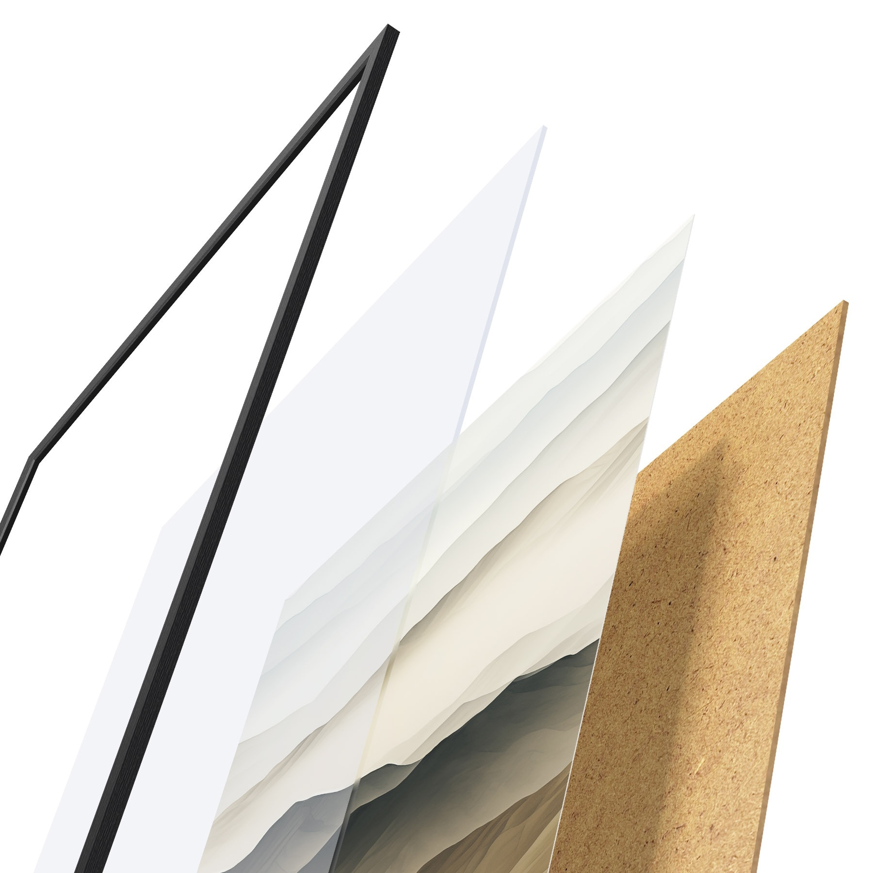 Plakatą sudaro rėmas, pleksiklas, atspausdintas vaizdas ir medžio drožlių plokštės pagrindas. Plakatą galima iš karto pakabinti ant sienos dėl kitoje pusėje esančių laikiklių.