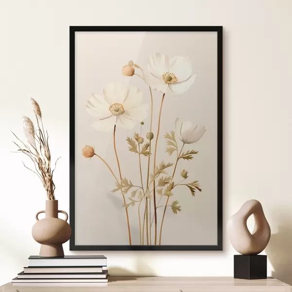 Plakatas gėlė, botaninis, smėlio spalvos fonas, minkšti tonai, žiedlapiai, augalas, derliaus, minimalus f45099