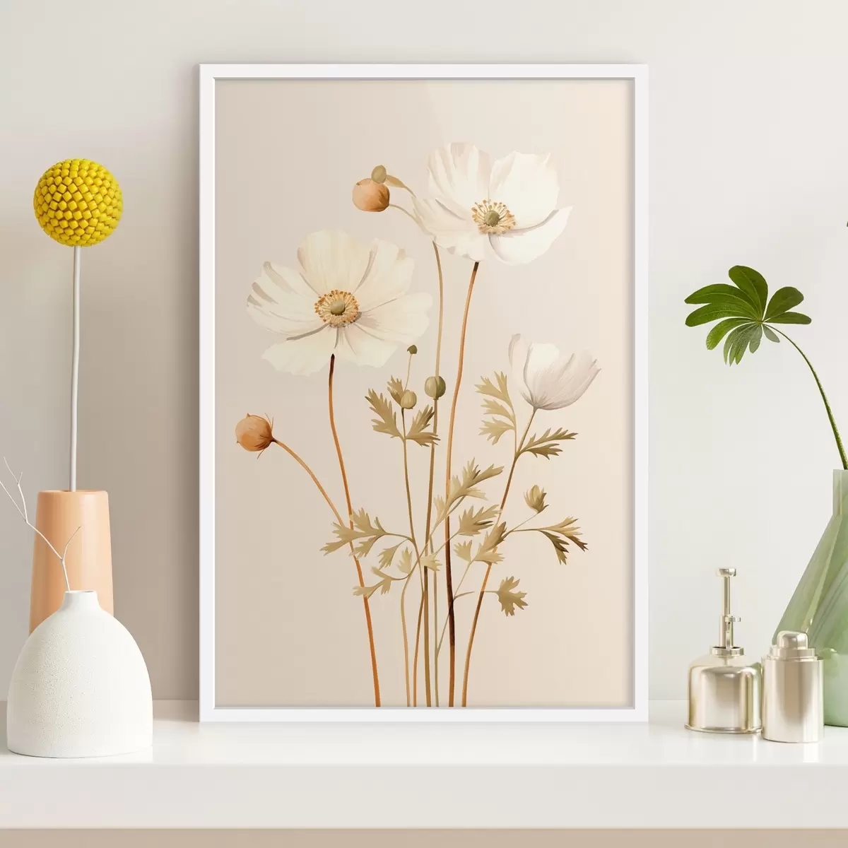 Plakatas gėlė, botaninis, smėlio spalvos fonas, minkšti tonai, žiedlapiai, augalas, derliaus, minimalus Ne f45099