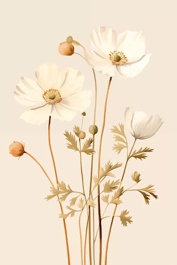 Plakatas gėlė, botaninis, smėlio spalvos fonas, minkšti tonai, žiedlapiai, augalas, derliaus, minimalus f45099