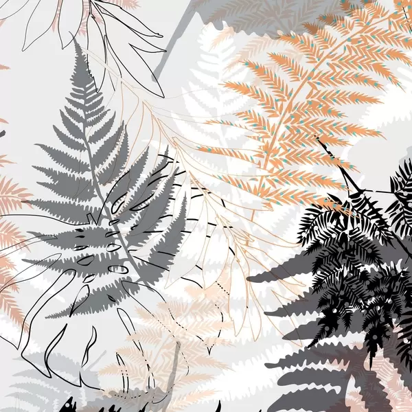 Plakatas papartis, abstraktūs lapai, modelis, plokščias dizainas, kontrastas, pilki tonai, botaninis, perdanga Ne f45101