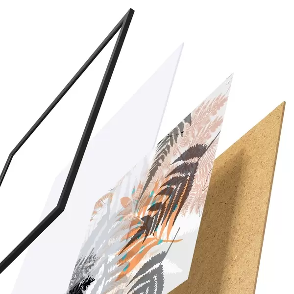 Plakatą sudaro rėmas, pleksiklas, atspausdintas vaizdas ir medžio drožlių plokštės pagrindas. Plakatą galima iš karto pakabinti ant sienos dėl kitoje pusėje esančių laikiklių.