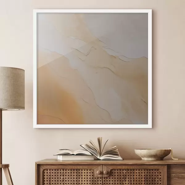 Plakatas abstraktus, skystis, smėlio spalvos, oranžinė, marmuro tekstūra, minkštas mišinys, organinės formos, lygus f45105