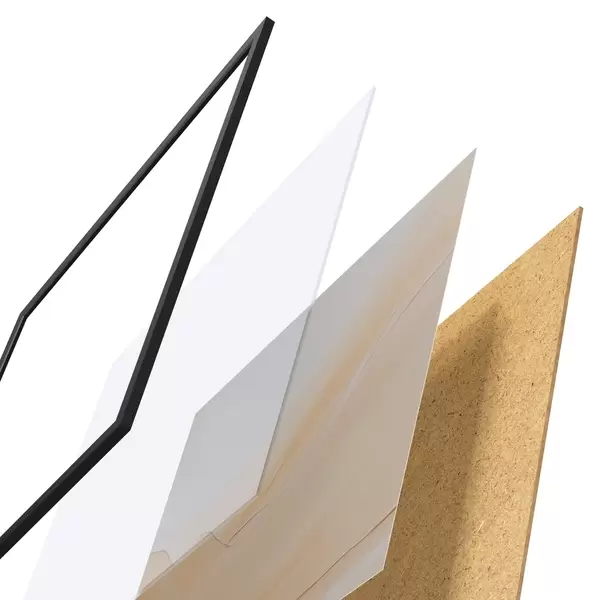 Plakatą sudaro rėmas, pleksiklas, atspausdintas vaizdas ir medžio drožlių plokštės pagrindas. Plakatą galima iš karto pakabinti ant sienos dėl kitoje pusėje esančių laikiklių.
