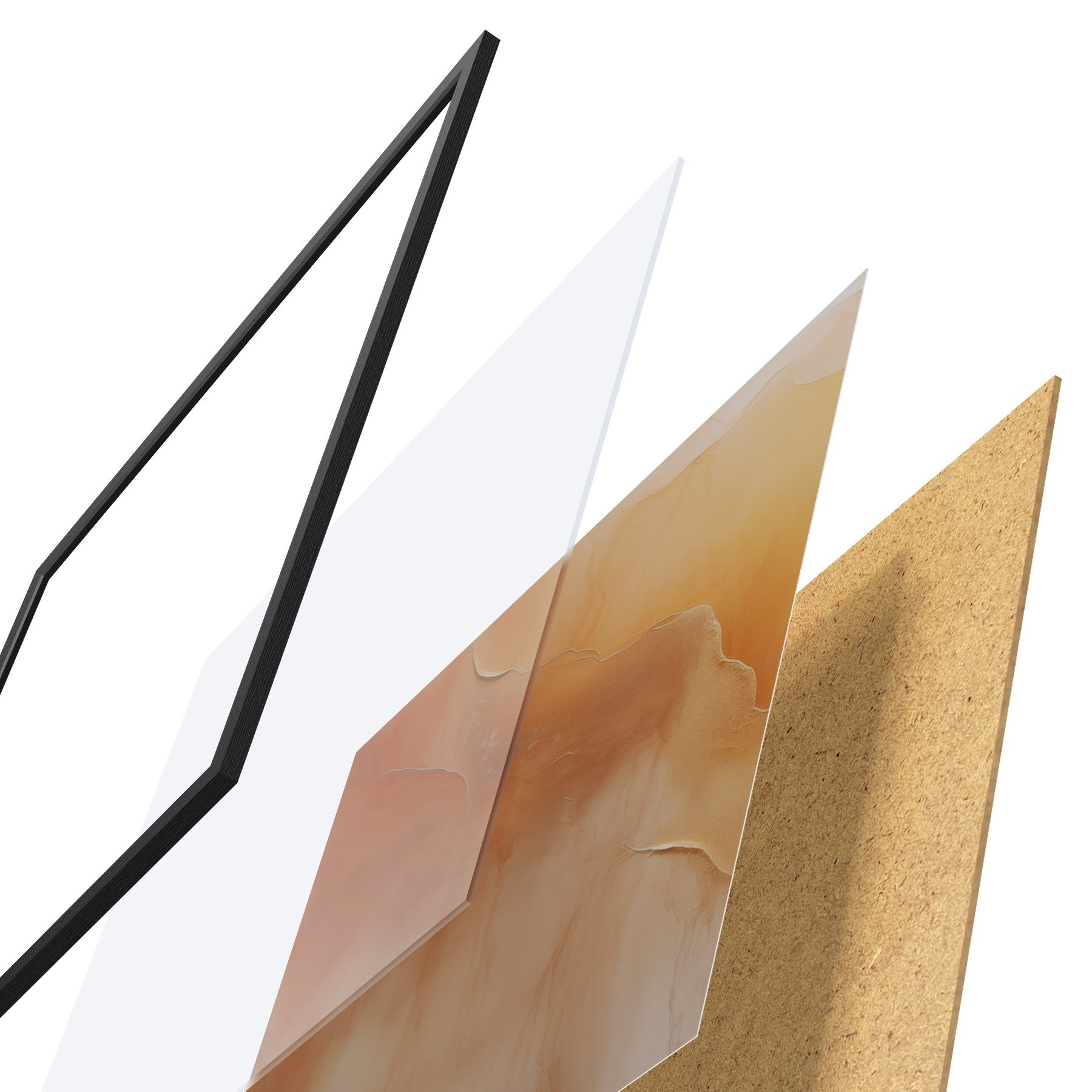 Plakatą sudaro rėmas, pleksiklas, atspausdintas vaizdas ir medžio drožlių plokštės pagrindas. Plakatą galima iš karto pakabinti ant sienos dėl kitoje pusėje esančių laikiklių.